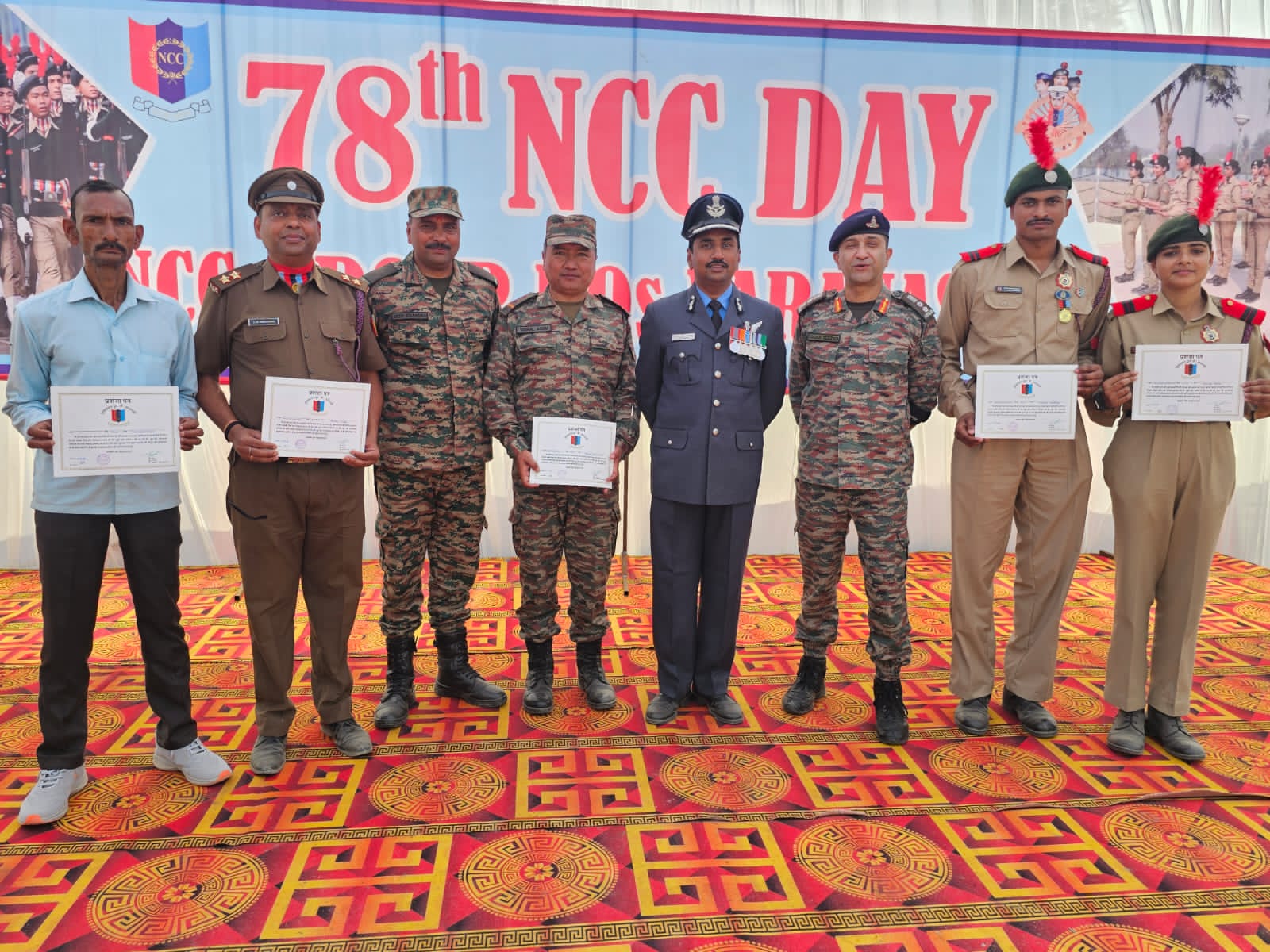 उक्त कार्यक्रम में ग्रुप बी वाराणसी एन सी सी मुख्यालय से संबद्ध लगभग 10 जिलों के विभिन्न बटालियन से 5 बेस्ट ए0एन0ओ0 और विभिन्न सर्वश्रेष्ठ प्रदर्शन वाले कैडेटों,पी0आई0 स्टाफ़ व सिविल स्टाफ़ को सम्मानित किया गया।