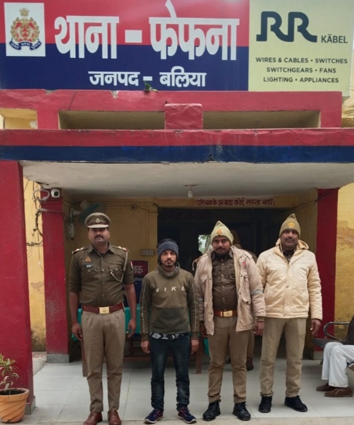 बलिया /अधीक्षक जनपद बलिया ओमवीर सिंह के निर्देशन में जनपद में अपराध की रोकथाम एवं अपराधियों के विरूद्ध चलाये जा रहे अभियान के क्रम में अपर पुलिस अधीक्षक दक्षिणी कृपा शंकर के निकट पर्यवेक्षण में एवं क्षेत्राधिकारी सदर राकेश सिंह व थानाध्यक्ष फेफना विश्वदीप सिंह के कुशल नेतृत्व में 03 जनवरी 2026 को थाना फेफना पुलिस टीम के उ0नि0 सत्येन्द्र चौधरी मय हमराह देखभाल क्षेत्र, चेकिंग संदिग्ध वाहन/व्यक्ति में मामूर थे कि मुखबिर की सूचना पर थाना स्थानीय पर पंजीकृत मु0अ0सं0 45/24 धारा 363/366/376 (2)(N) भादवि व 5L/6 पाक्सो एक्ट से सम्बन्धित वांछित अभियुक्त शुभम खरवार उर्फ निर्मोही पुत्र संजय कुमार निवासी गंगहरा थाना फेफना जनपद बलिया को फेफना रेलवे स्टेशन के बाहर से समय 09.35 बजे हिरासत पुलिस में लिया गया।अभियुक्त उपरोक्त के विरूद्ध विधिक कार्यवाही करते हुए मा0 न्यायालय भेजा गया।